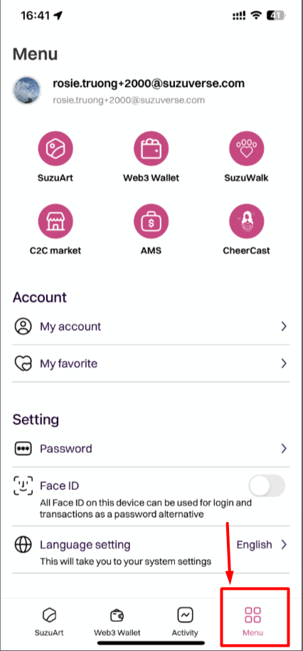 1. If you logged out, please sign in to your SUZUWALK account. After logging in, access "My profile" -> My account: