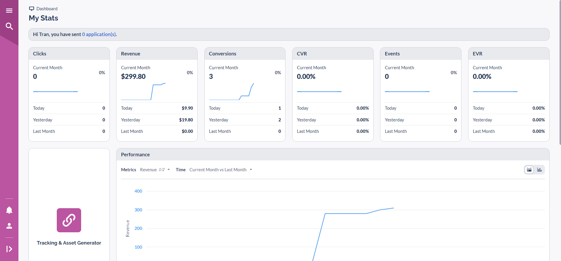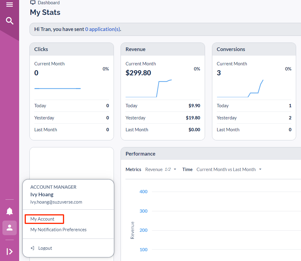 1. Visit the login page of the SUZUVERSE Affiliate Everflow program, you will see dashboard like: