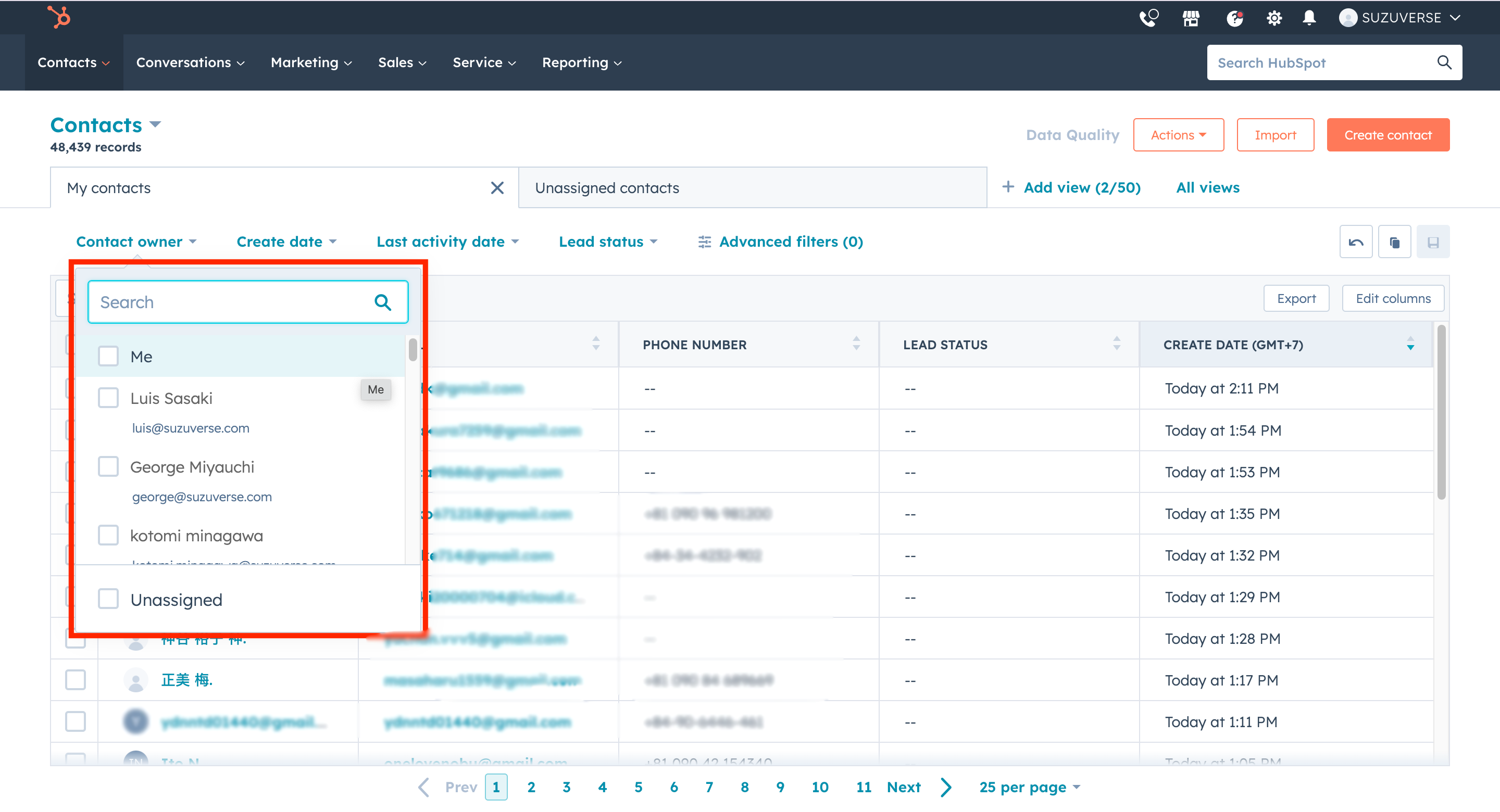 2. To filter your own affiliate contacts, select "Contact owner" tab