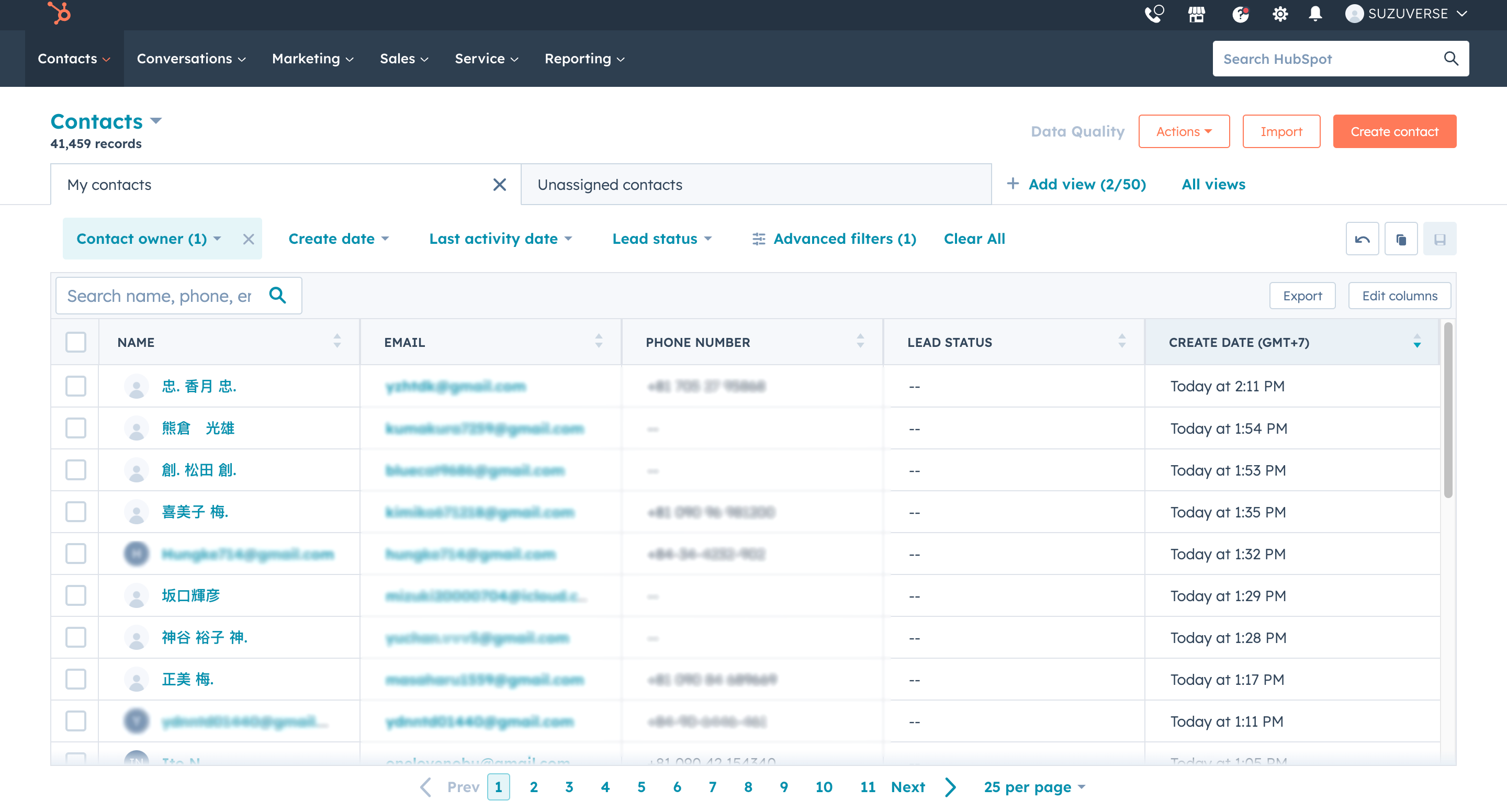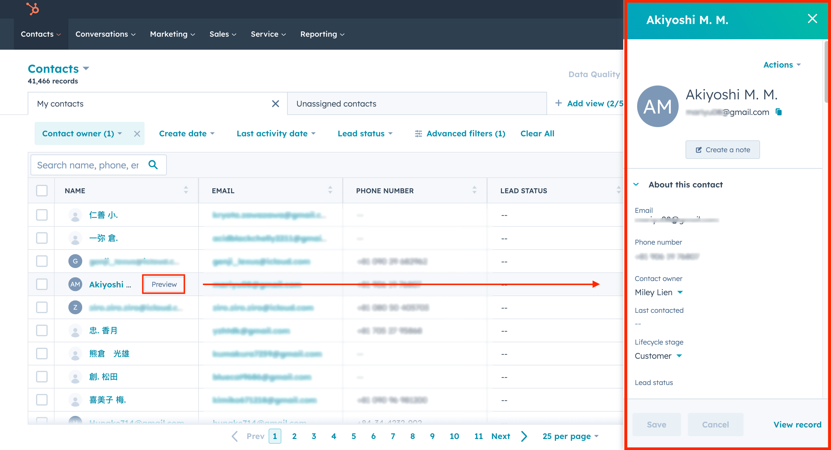 When you want to check a certain affiliate's information (email, name, phone, address, type, ect..), here are the general steps to check contact information on HubSpot: