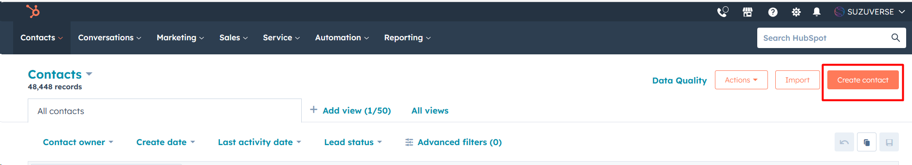 To add this new customer who is not in the Suzuverse system to your HubSpot contacts, follow these steps outlined in the general guide below: