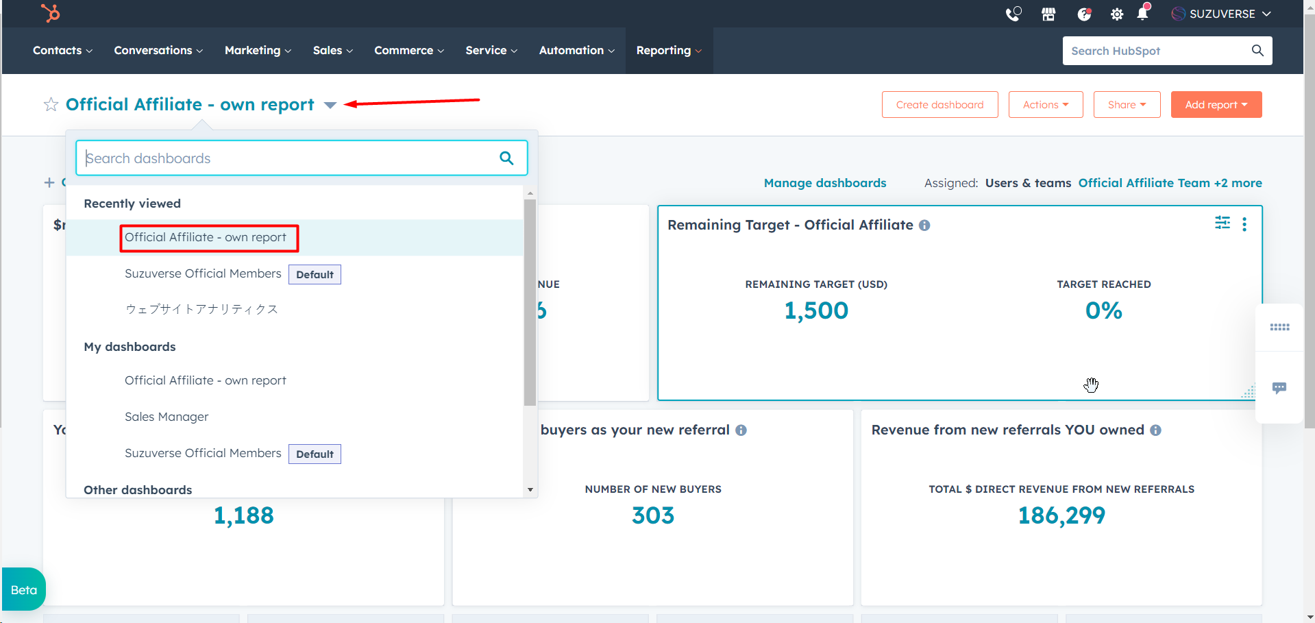 If you want to check your team's performance to push their targets, you can check in the Suzuverse Official Members dashboard: