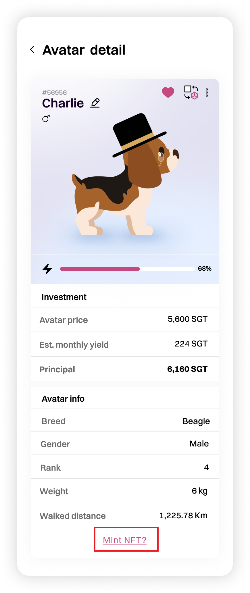 Note: NFT minting via the app is restricted to those NFTs that are eligible to earn walking rewards.