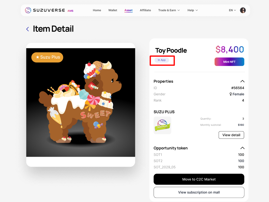 - And show 'In app” tag when avatar is unlisted on NFT Marketplace. In order to sell NFT, please refer this article: How to sell your NFTs on SUZVERSE NFT Marketplace?
