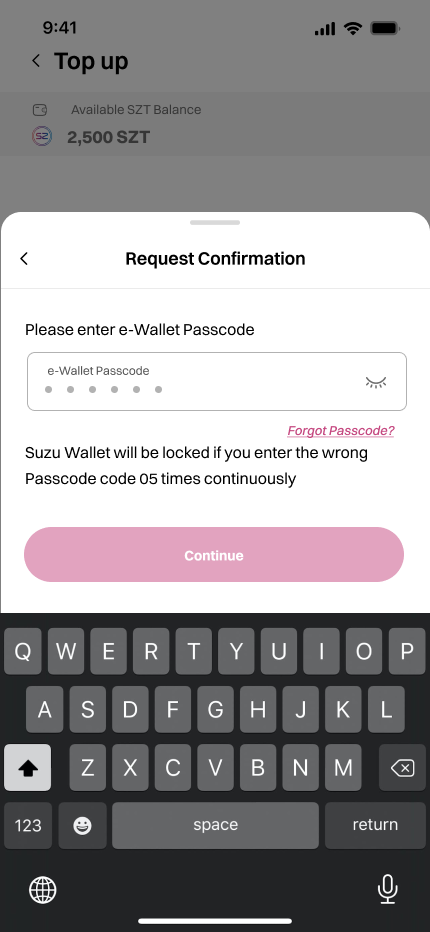 3. After adding the top-up amount, you will need to confirm the transaction by entering your E-Wallet Passcode