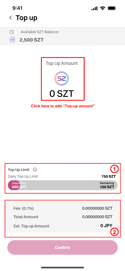 2. Click this area to adjust "Top-up amount"