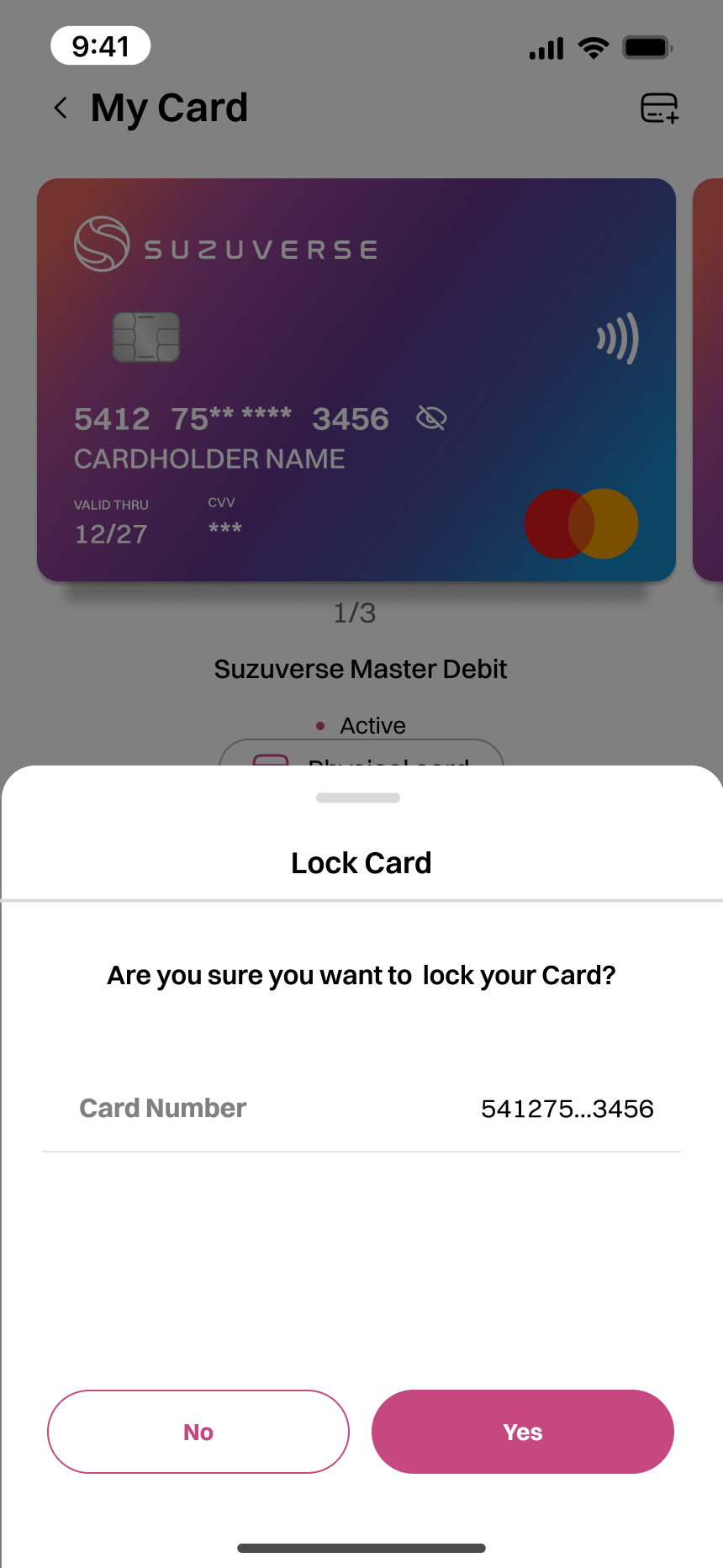 2. Tap this button to lock your card