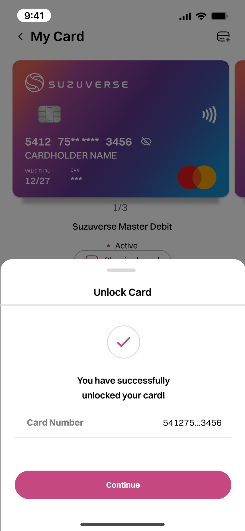 4. Once your verification is approved, your card details will be displayed as shown below