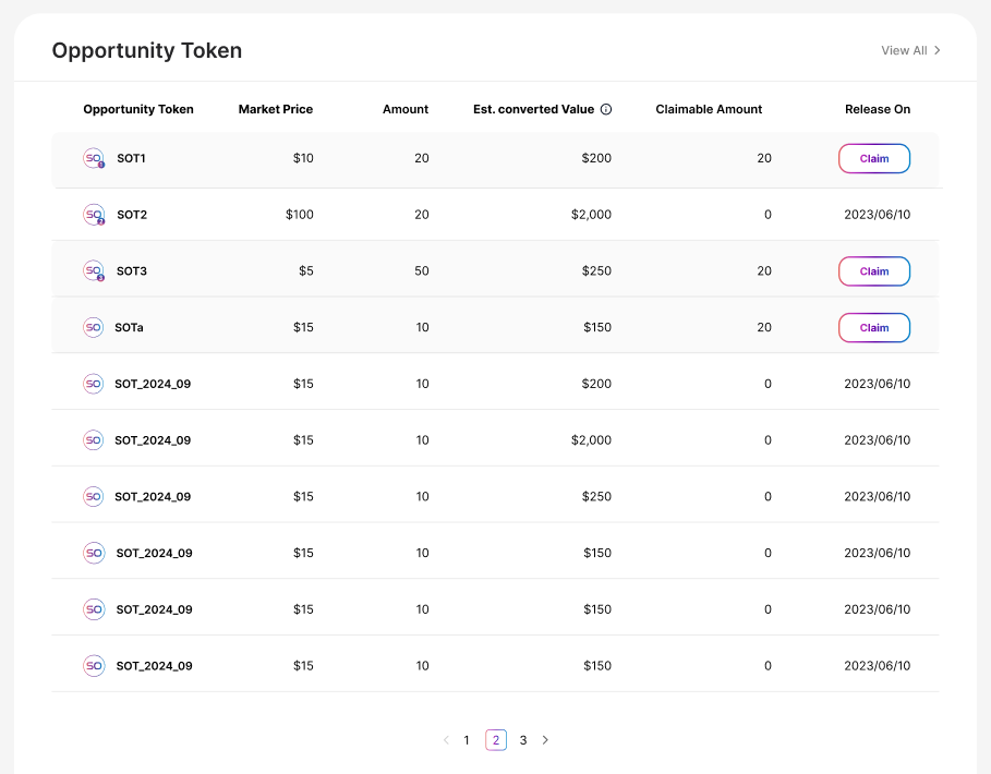 3. SOT配布のステータスを確認するには、[オポチュニティトークン]をタップする