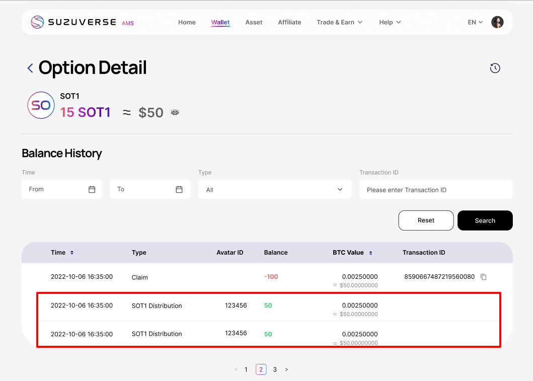 アバター購入に対するSOT配布には、アバターIDが付随します。
