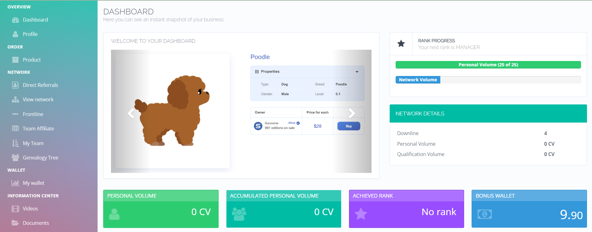 3. ボーナスウォレットセクションでは、成功した紹介や販売によって発生したコミッション額を含む、あなたの収益に関する情報をご覧いただけます。これはリアルタイムトラッキングで、コミッションのアップデートを即座に確認することができます。