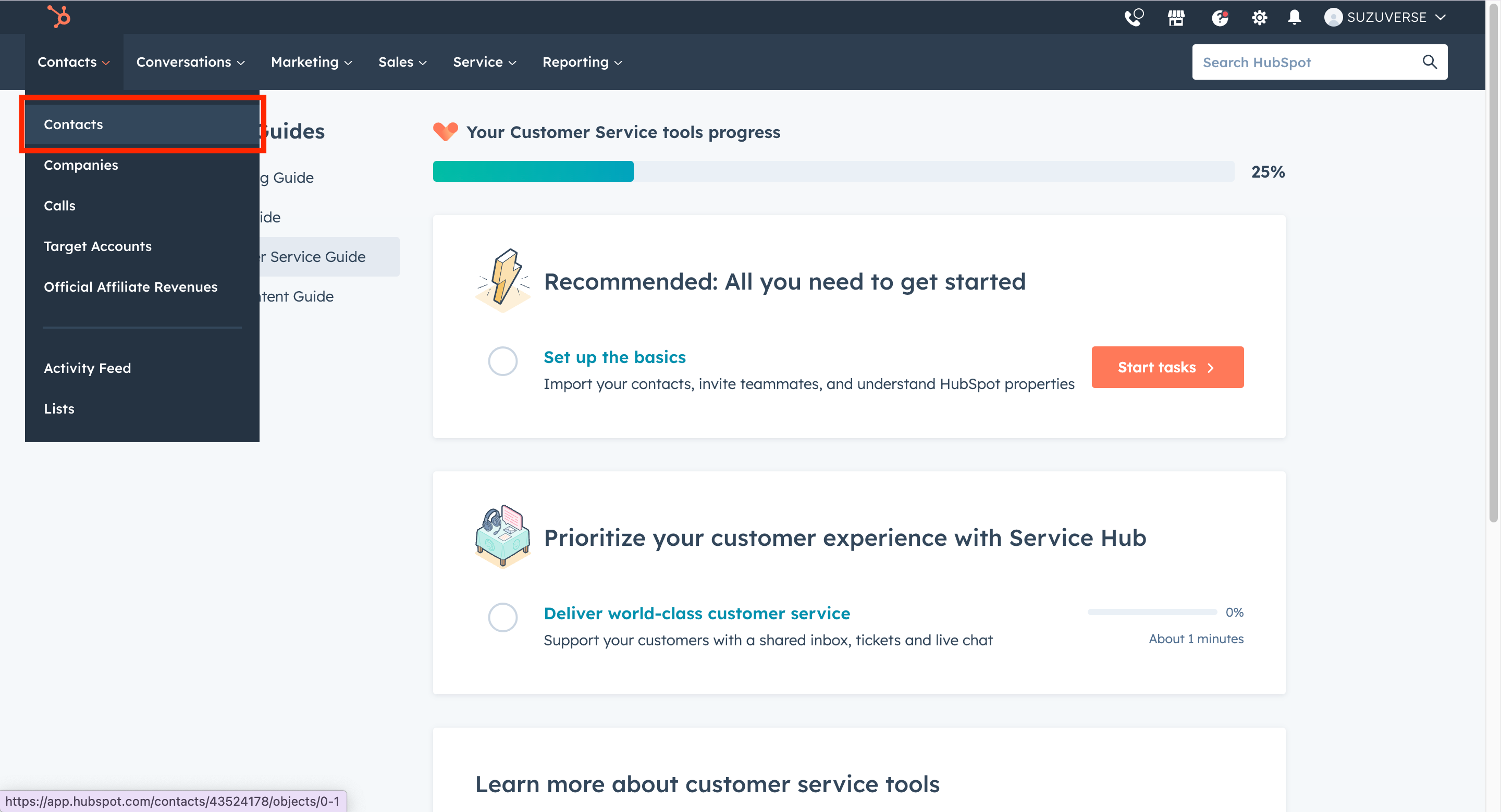 1. Hubspotにログインし、メニューバーの「コンタクト」セクションを選択します。