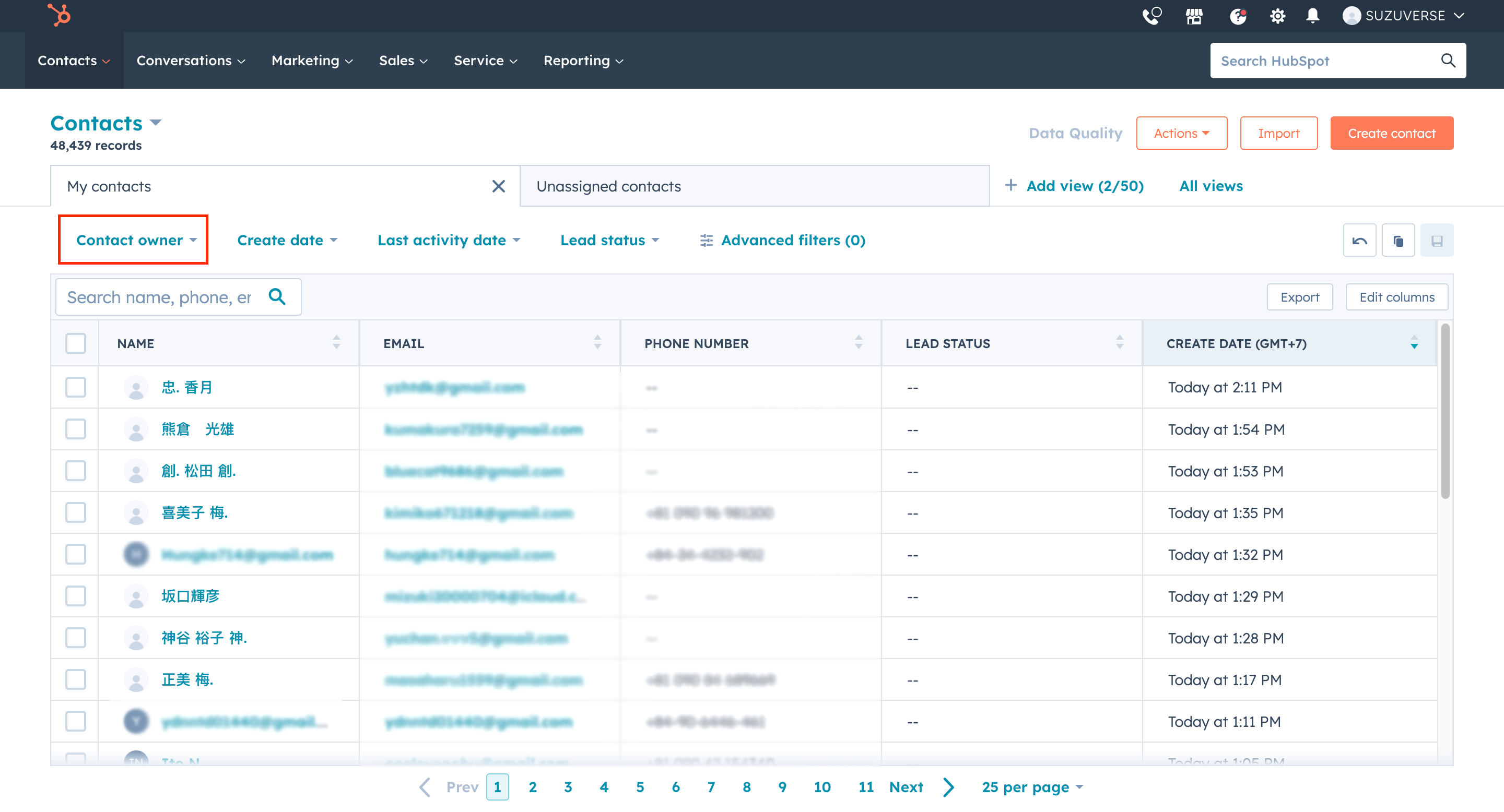 特定のアフィリエイトの情報(Eメール、名前、電話、住所、タイプなど)を確認したい場合、HubSpotで連絡先情報を確認する一般的な手順は以下の通りです: