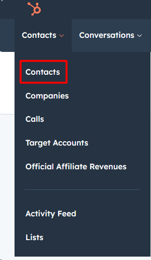 ログインしたら、「コンタクト」セクションに移動します。通常、メインナビゲーションメニューにあります。