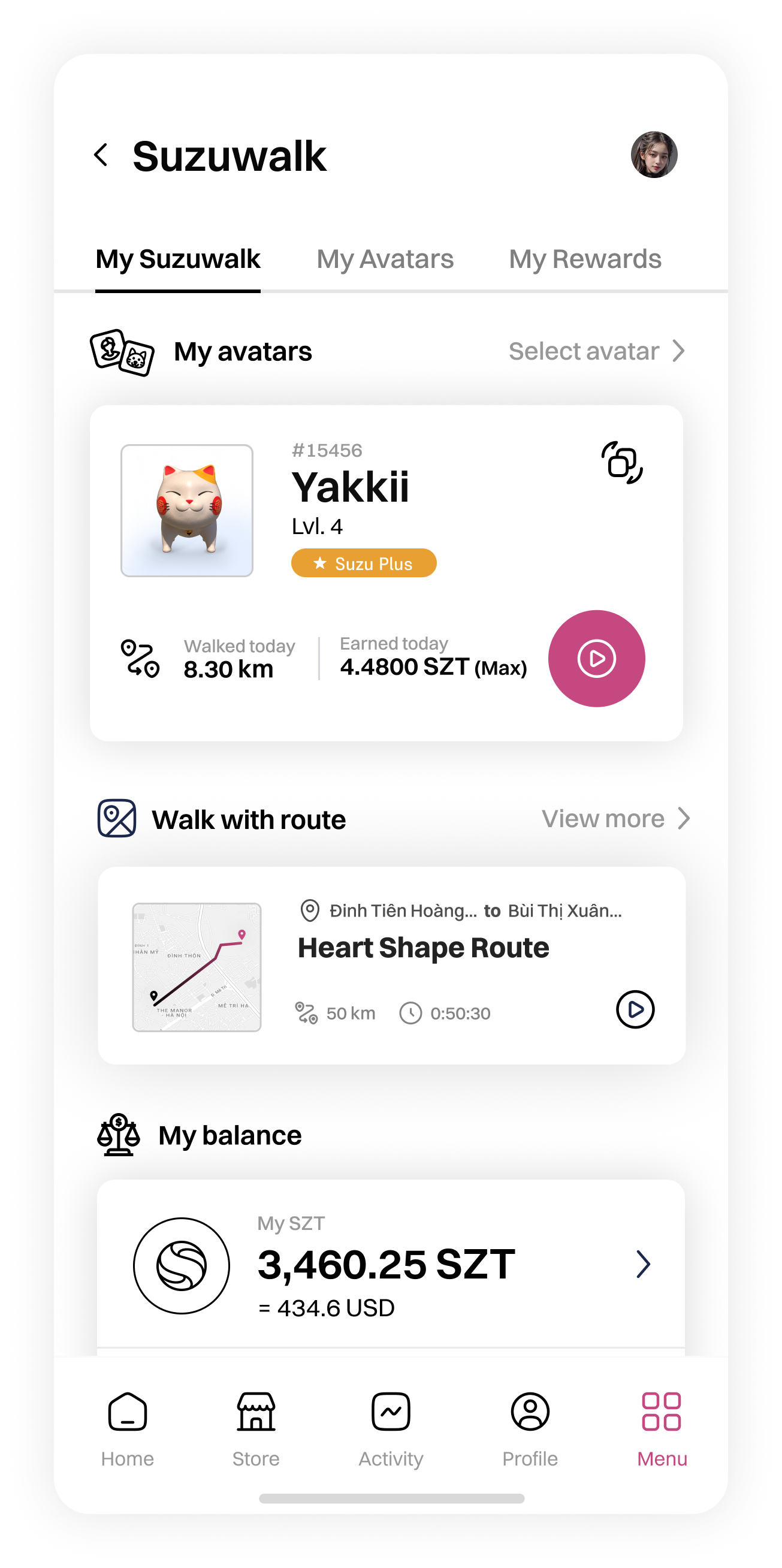 Suzu Plusは、すべてのアバターと一緒にご利用いただけるサブスクリプションパッケージです。このサブスクリプションパッケージを装備したアバターを購入すると、アバターを購入するよりもはるかに多くの散歩報酬を得ることができます。投資すればするほど、より多くの収入を得ることができます!