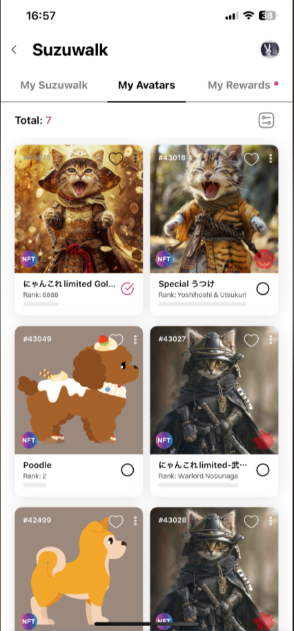 - マイアバター」タブをクリックします。あなたのNFTはそこにリストアップされ、簡単にアクセスできます。