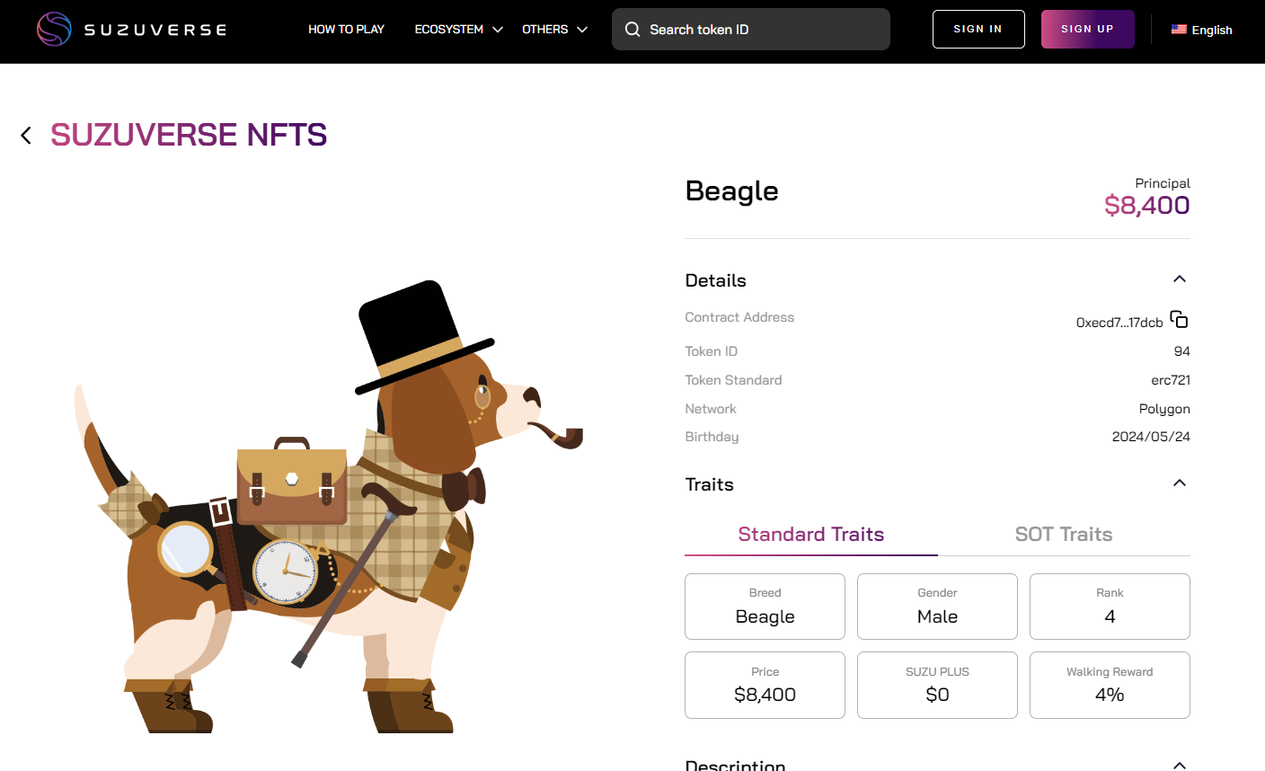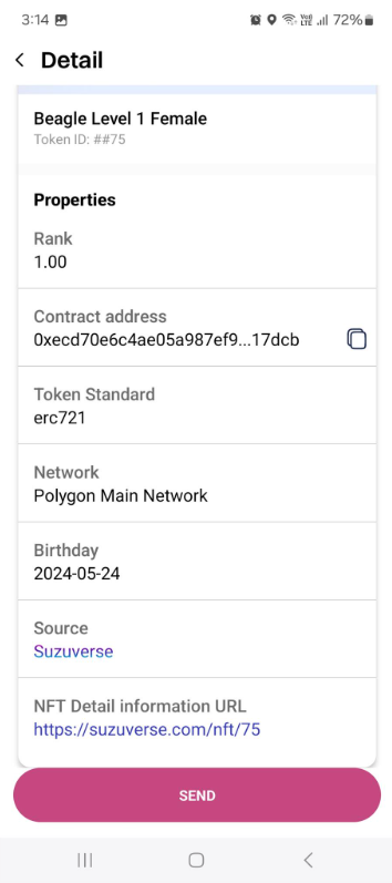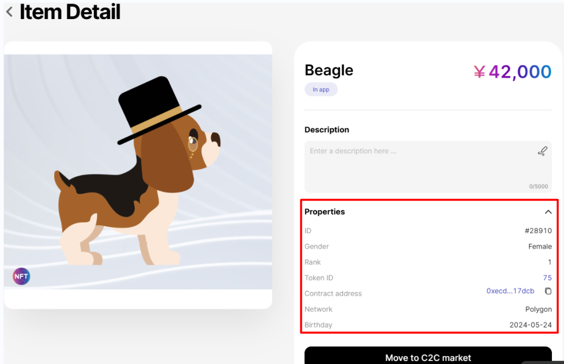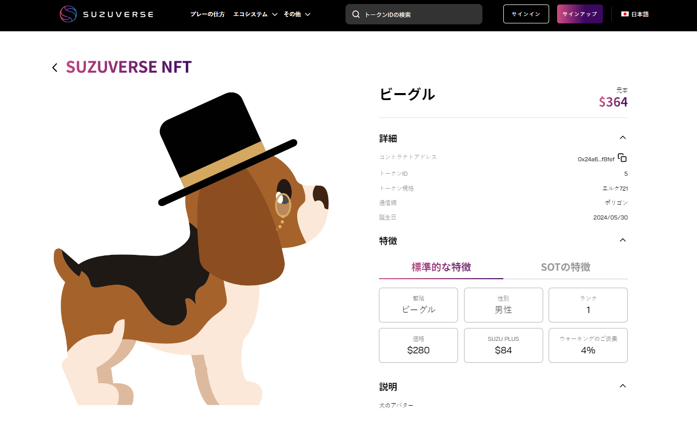 さらに詳しい情報については、NFT 詳細情報の URL もご覧ください。上の画面の NFT 詳細情報の URL をクリックすると、次の Web サイトに移動します。