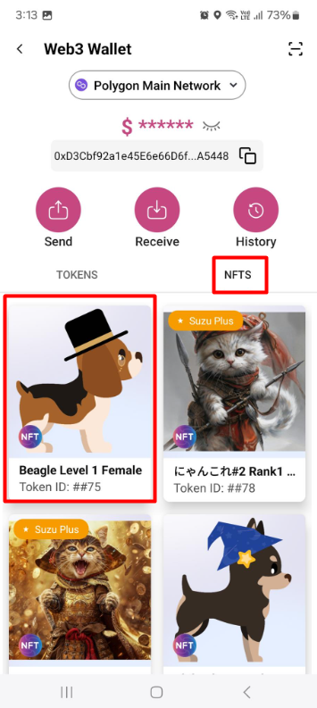 - Web3ウォレットにアクセスし、NFTタブを選択します。