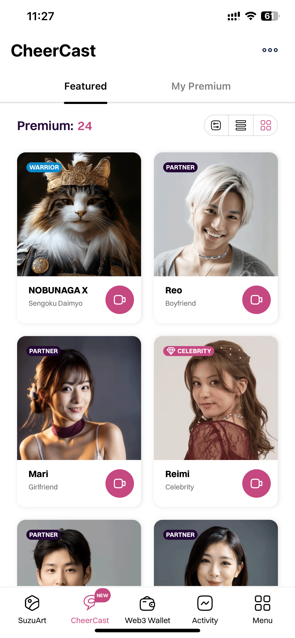 呼びたいコンパニオンを選択します。CheerCastを初めて使う方は、こちらのガイドを参考にしてください: CheerCastの使い方