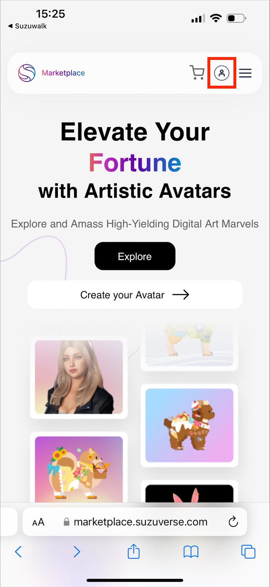1. AMS(https://ams.suzuverse.com/)またはC2Cマーケット(https://marketplace.suzuverse.com/)にアクセスする。