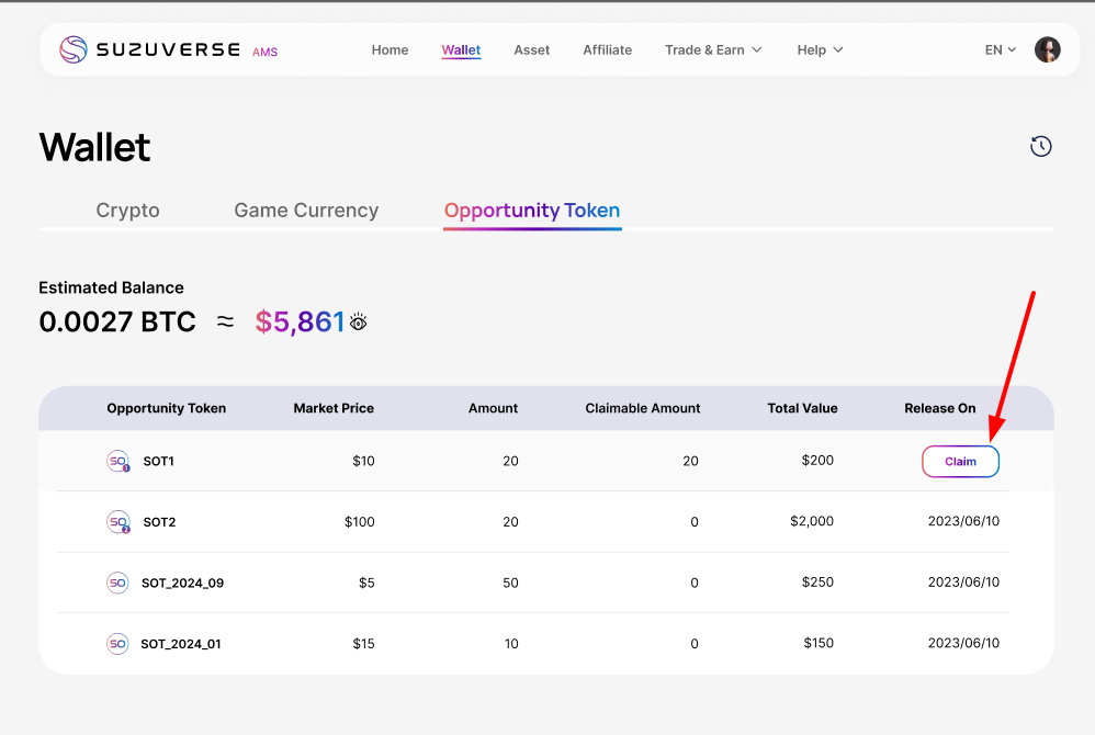 1. AMS 페이지에서 "Suzuverse 지갑"에 접속하세요:
