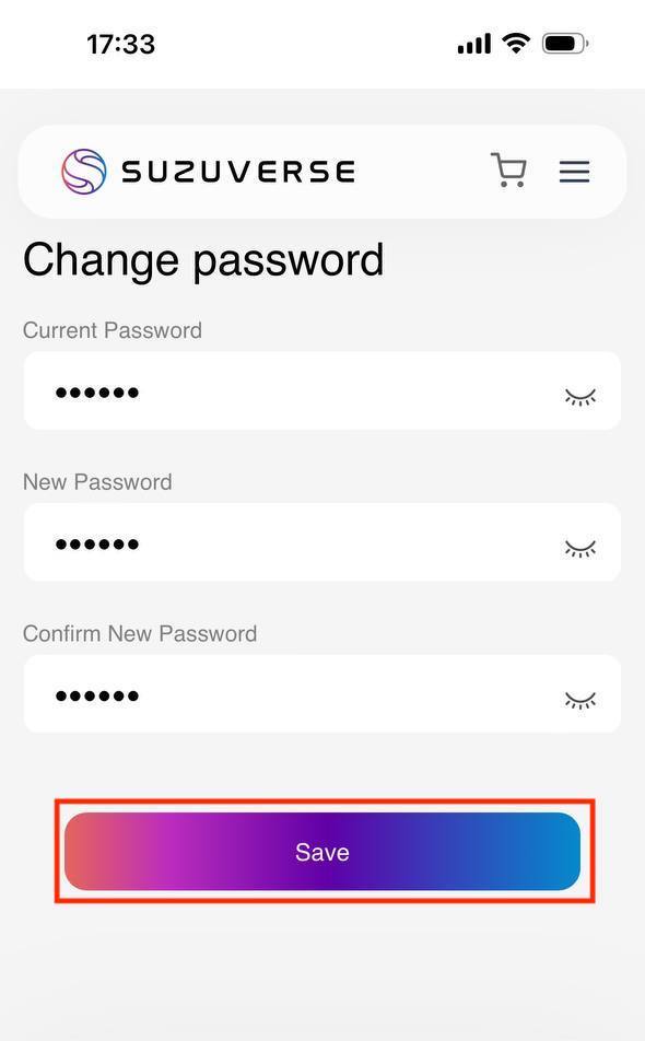 2. Digite sua senha atual e a nova senha. Clique no botão Salvar