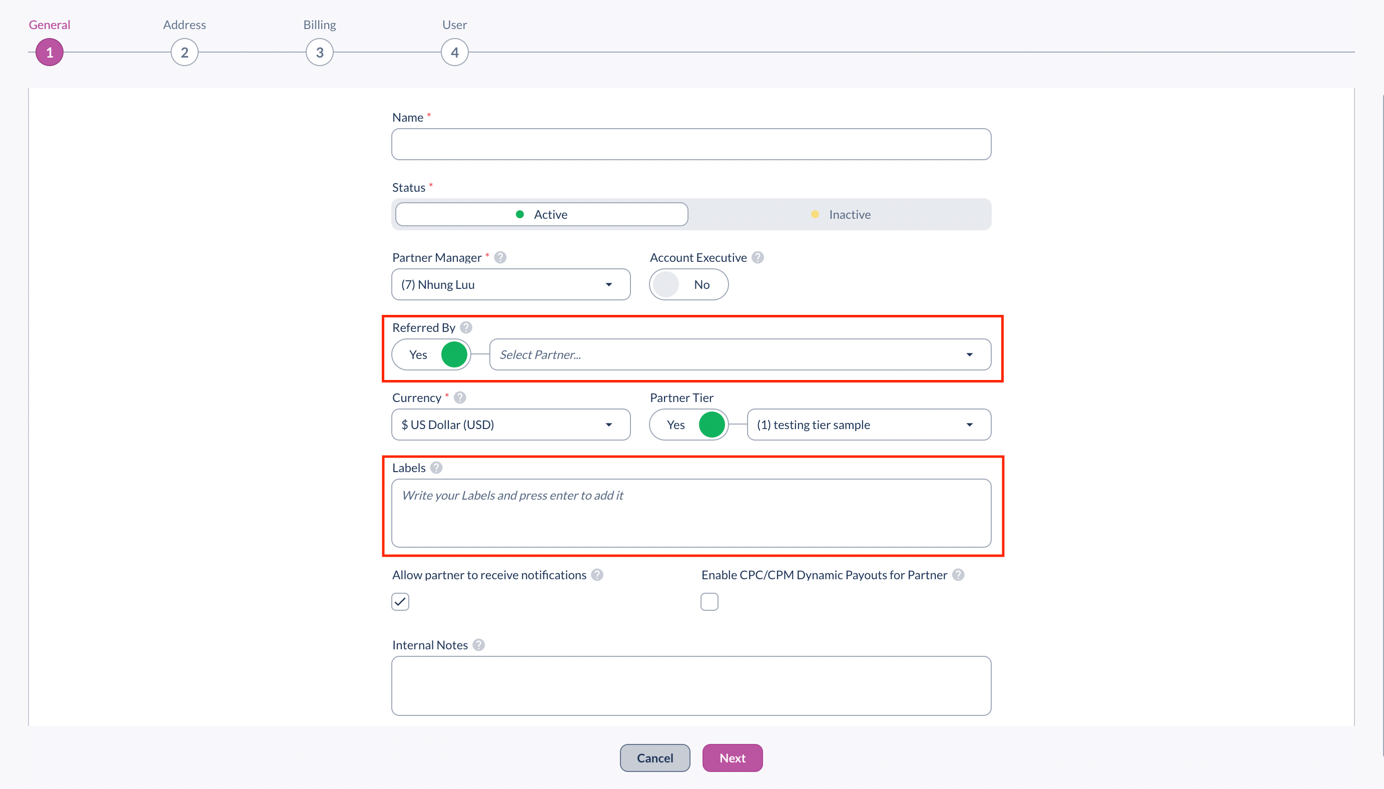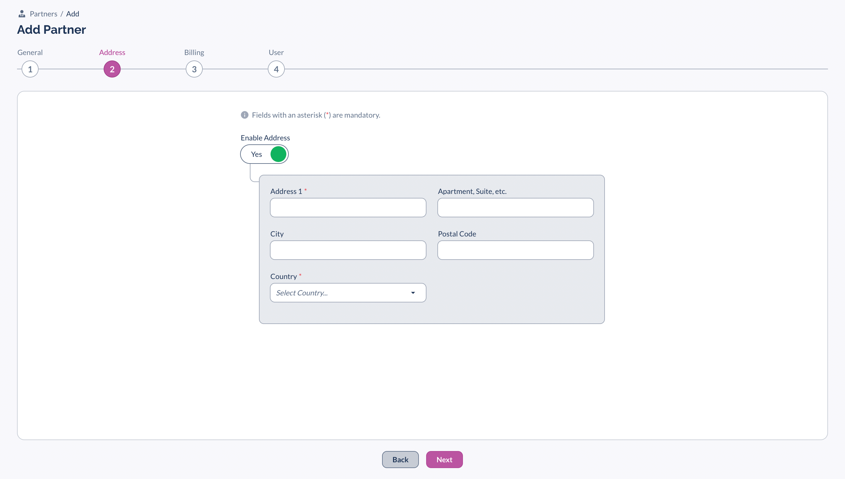Marca de comércio eletrônico: Adicionar novo parceiro
