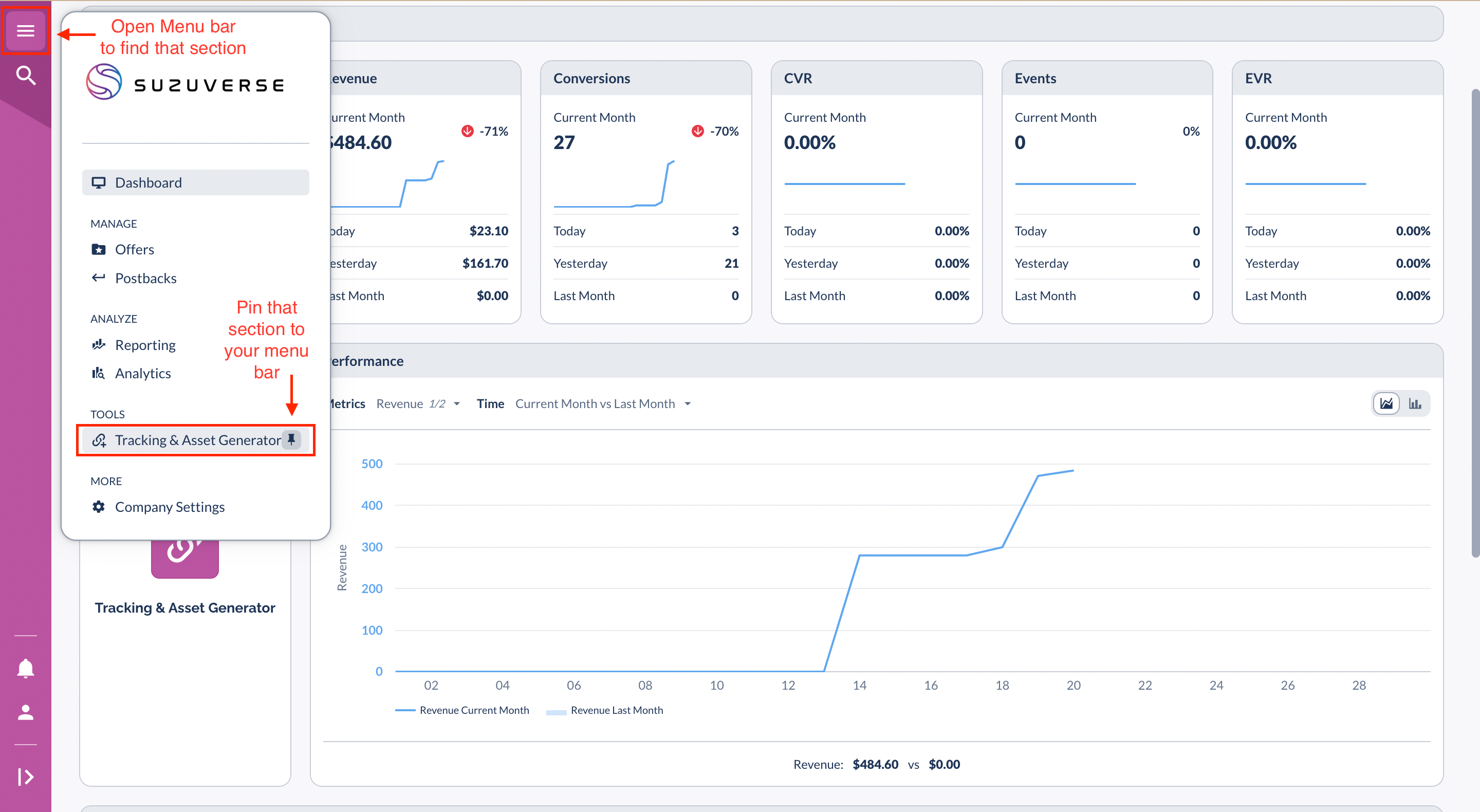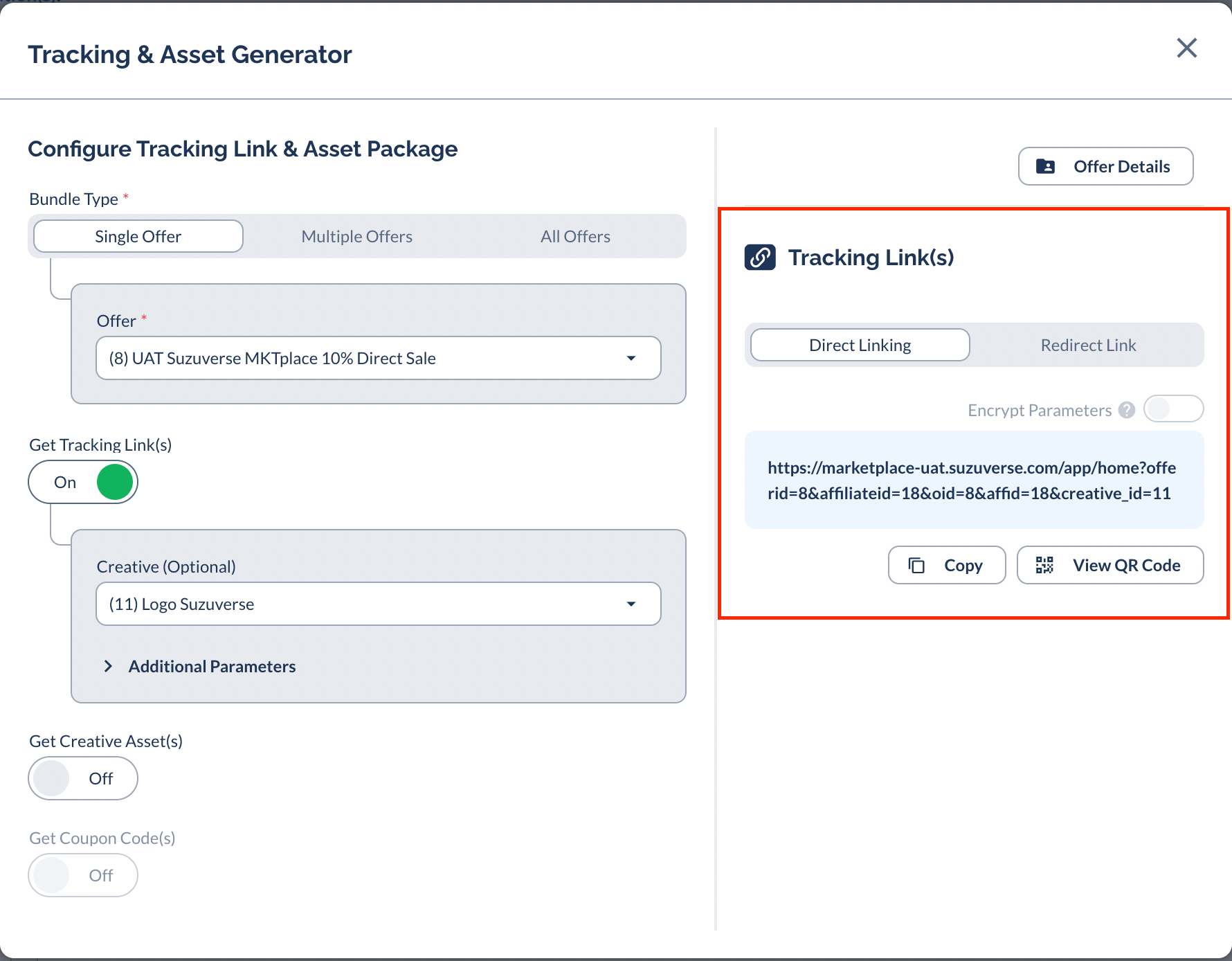 O recurso Tracking & Asset Generator foi projetado para simplificar o processo de criação de links de rastreamento e geração de ativos de marketing para campanhas de marketing de afiliados. Ele ajuda os usuários a rastrear e otimizar efetivamente suas campanhas para obter o máximo desempenho.
