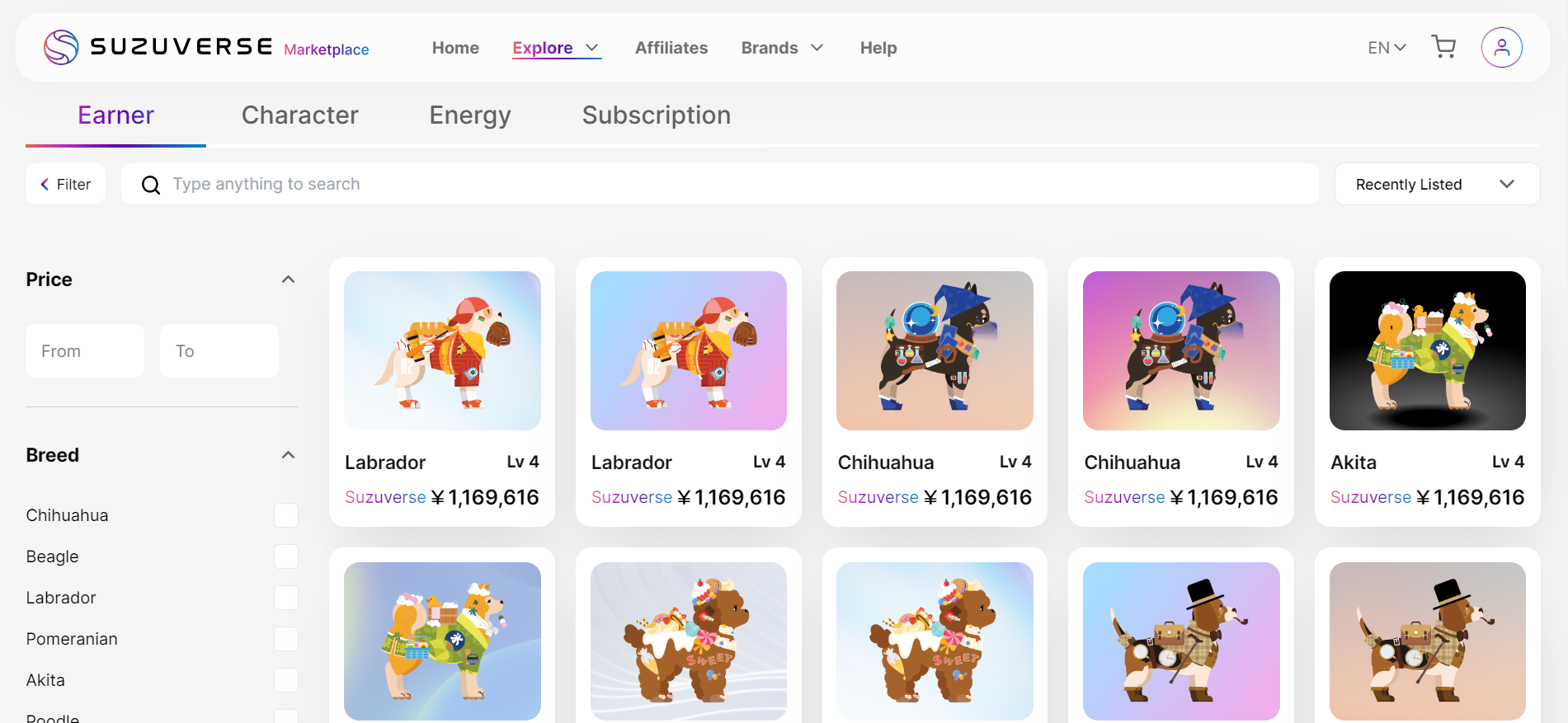 Sua indicação será direcionada imediatamente para a plataforma do Suzuverse Marketplace depois de clicar em seu link de rastreamento ou escanear seu código QR.