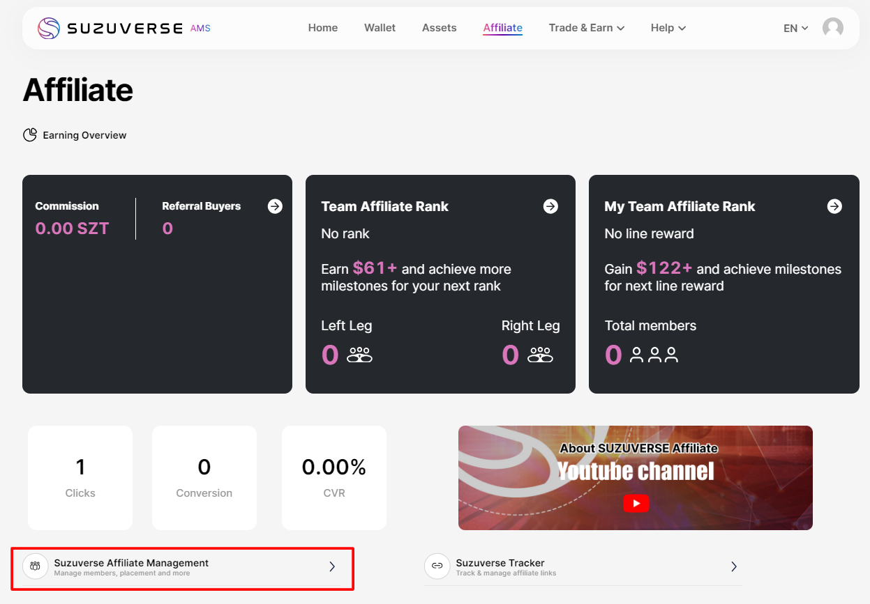 Como acessar meu painel de controle de afiliados da SUZUVERSE?
