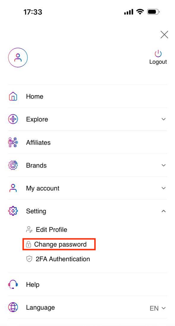 1. Nhấp vào biểu tượng Menu, Thay đổi mật khẩu trong phần Cài đặt: